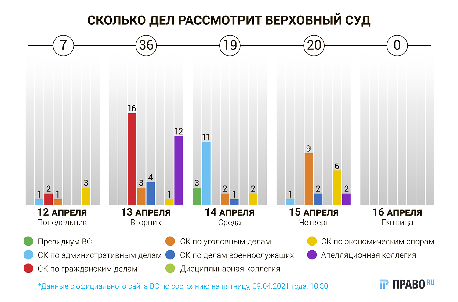 Экономколлегия с 12 по 16 апреля рассмотрит 12 дел.