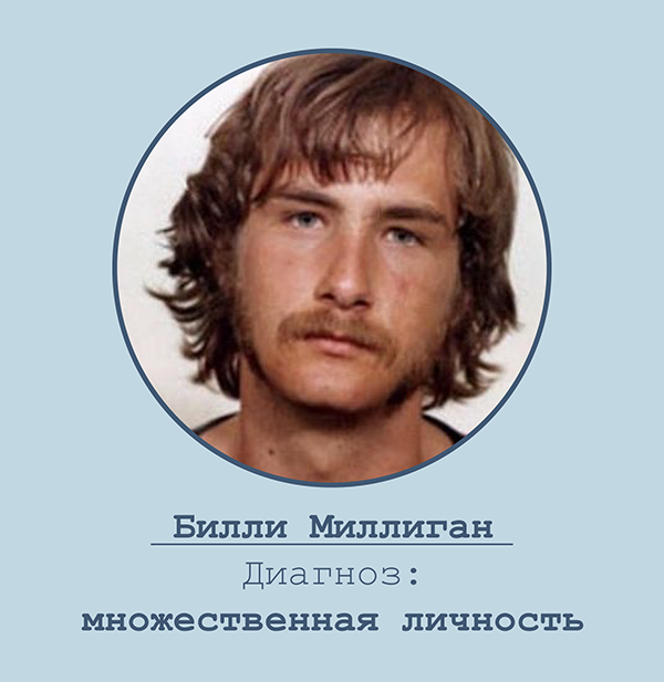 Билли Миллиган — один из самых известных людей с диагнозом «множественная личность». Он родился в США 14 февраля 1955 года. Детство было тяжелым: родной отец злоупотреблял спиртным и после нескольких попыток покончил с собой. Позже отчим жестоко избивал мальчика. Как рассказал сам Миллиган, в возрасте восьми лет приемный отец его изнасиловал. Сексуальные издевательства продолжались и дальше. Мужчина угрожал, что если маленький Билли пожалуется кому-то, то он «закопает его заживо». Все детские травмы привели к тому, что Миллиган «расщепился» на 24 личности. Каждая была не похожа на другую и имела собственный характер, внешность и даже судьбу. Восьмилетний Дэвид — миниатюрный мальчик с каштановыми волосами. Он был пуглив и принимал на себя всю боль остальных. Появлялся после того, как Билли обижали. Адалана — длинноволосая брюнетка, которая мечтала о любви. Она готовила и вела хозяйство. Но не все личности оказались положительными: 18-летний Аллен умело манипулировал людьми, а крупный югослав Рейджен умел управлять выбросами адреналина, поэтому в критических ситуациях обладал невероятной силой. Были и нежелательные, которых старались подавлять. Среди них вечный обманщик Стив и Эйприл, которая мечтала отомстить отчиму за зверства и подговаривала остальных его убить. Не все личности знали о существовании друг друга. О том, что в его теле уживаются столько разных «людей», не знал и Миллиган. Он замечал только, что постоянно теряет время и оказывается в неожиданных местах. Так он однажды «очнулся» в другой стране. Оказалась, что одно из его «я» — 22-летний Артур — приехало на родину в Англию.