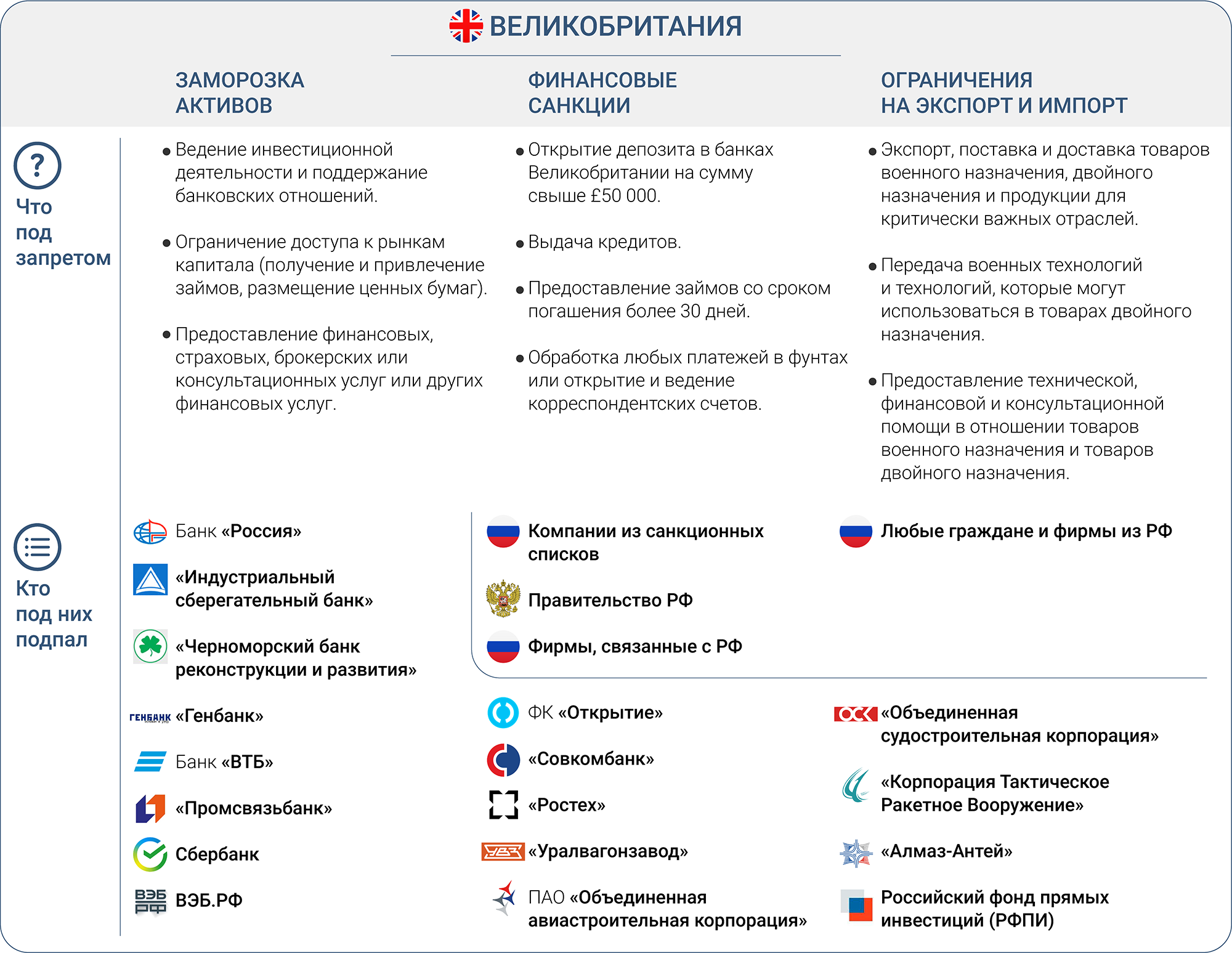 Великобритания распространила ограничения не только на суда под российским флагом, но и на те суда, которые контролируются российскими судовладельцами, хотя и ходят под иностранными флагами. То есть, даже если российская судоходная компания поменяет флаг с российского на «удобный» флаг в офшорной юрисдикции, санкции всё равно будут распространятся на такие суда.