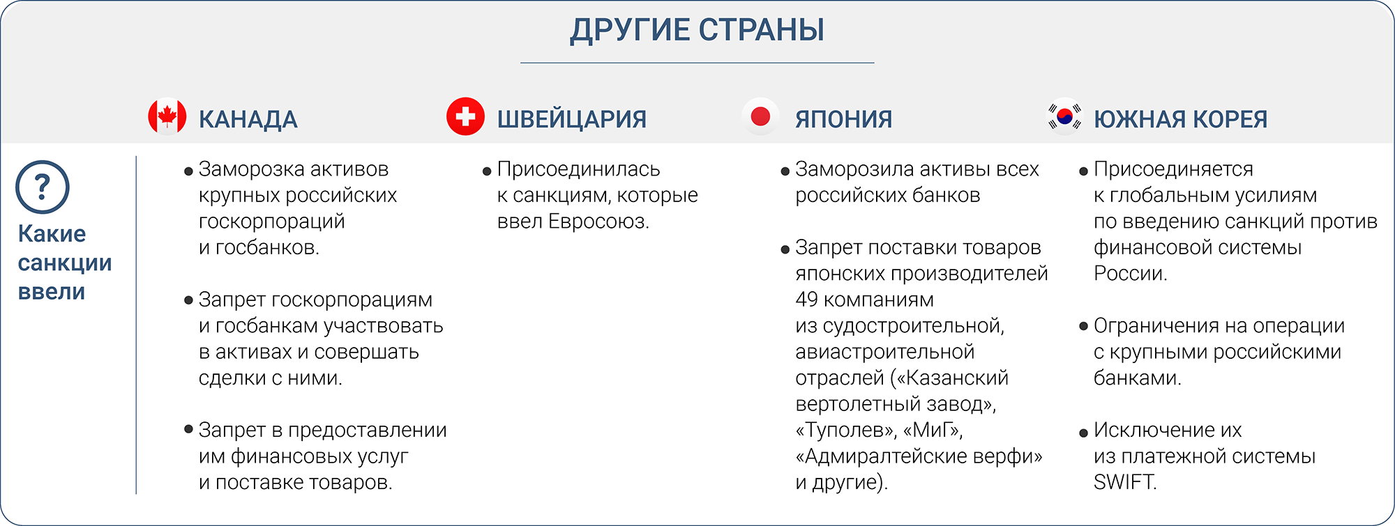 К 8 марта 2022 года Россия превзошла Иран и Северную Корею по количеству наложенных на нее санкций, сообщает Bloomberg. Общее число различных ограничений приближается к отметке в 6000. Для сравнения против Ирана на сегодня ввели менее 4000 подобных мер. Управляющий партнер юридической фирмы Nektorov,Saveliev&Partners Александр Некторов объясняет, что самые болезненные для РФ те санкции, которые бьют по кровеносной системе любой экономики — финансам и транспорту. С коллегой соглашается и Марат Самарский, старший юрист практики «Санкции и право экстренной ситуации» юридической фирмы BGP Litigation : «Все из-за комплаенс и риск-политики большинства зарубежных финансовых организаций. Из-за выстроенного там контроля они просто не в состоянии одновременно обрабатывать новые и новые массивы регулирования и реагировать на текущие вопросы». Потому даже не подпавшие под санкции компании и сектора могут испытывать проблемы с расчетами на международном уровне, подчеркивает эксперт.