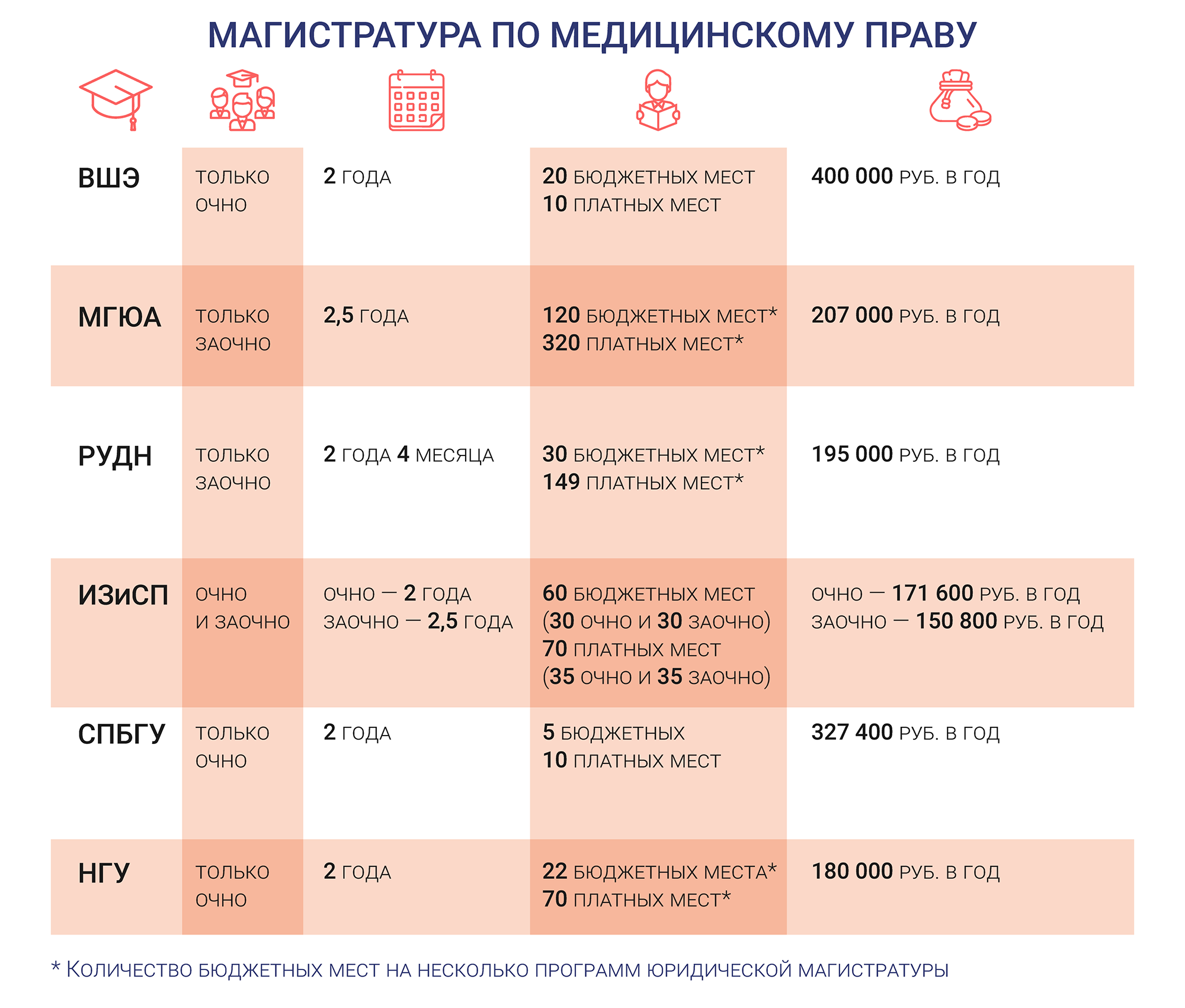 Из-за высокой конкуренции вузов за абитуриентов, а еще соревновательности на рынке труда появились программы подготовки медицинских юристов. Обычно это магистерские программы или спецкурсы.