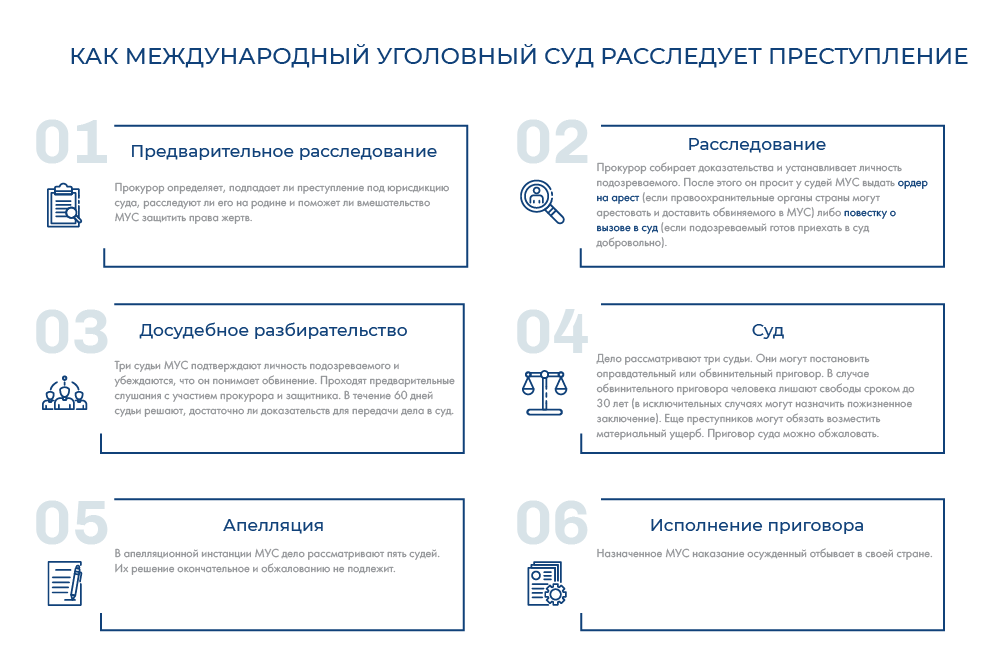 Обращение стран необходимо, потому что по закону МУС не может расследовать преступления на Украине: страна не ратифицировала основной документ суда — Римский статут. На текущий момент в международном договоре участвуют 123 страны, в том числе Греция, Португалия, Швейцария и даже Афганистан. США в список не входит.