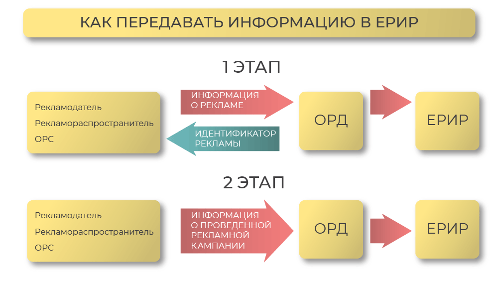 Эксперт поясняет, что отношения между агентством и системой «Яндекс» регулируются офертой на оказание услуг. В нее добавили условия о предоставлении рекламы в реестр. По ним «Яндекс» передает сведения в ЕРИР и для этого привлекают «Яндекс ОРД». «То есть правоотношения с оператором рекламных данных возникают только у ОРС — в нашем случае это рекламная система «Яндекс», — объясняет Глащенко. Оператор системы автоматически передает все сведения оператору данных, чтобы получить идентификатор на креатив. Затем ОРД автоматически его присваивает и рекламный процесс запускается: рекламораспространители начинают размещать рекламу с токеном.
