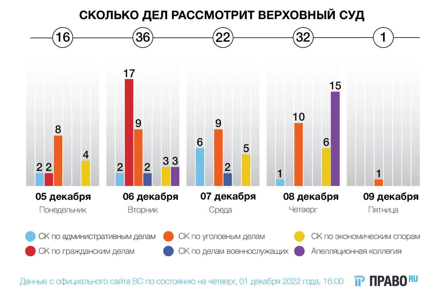 Коллегия по гражданским делам рассмотрит 19 дел, в их числе такое.