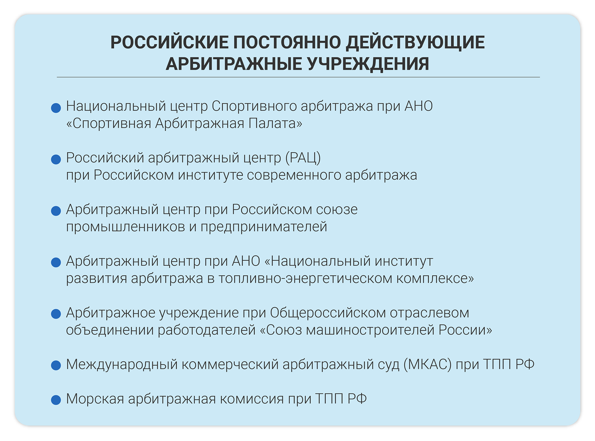 После арбитражной реформы 2015–2017 годов третейские споры в России могут рассматривать только арбитражные учреждения, получившие разрешение правительства. О том, как продвигалась реформа, — в материале «Хотели как лучше, а получилось ли: как идет реформа третейских судов». Беспристрастность решений таких органов была под большим сомнением, и реформой пытались сократить количество «карманных» судов, подконтрольных стороне спора. Сейчас в России действует семь арбитражных учреждений.