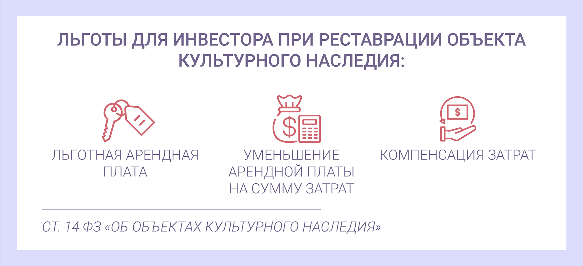 Когда инвестор вкладывает личные средства в сохранение такой недвижимости, ремонтирует ее или реставрирует, он вправе рассчитывать на три вида бонусов.