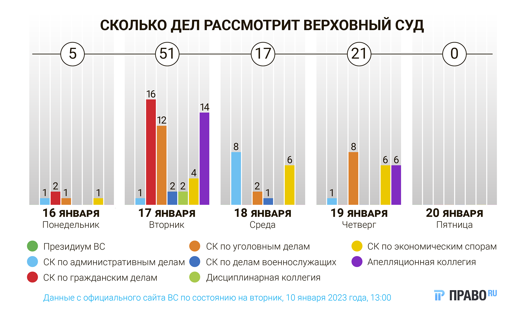 Коллегия по административным делам запланировала 11 дел, среди них такие.