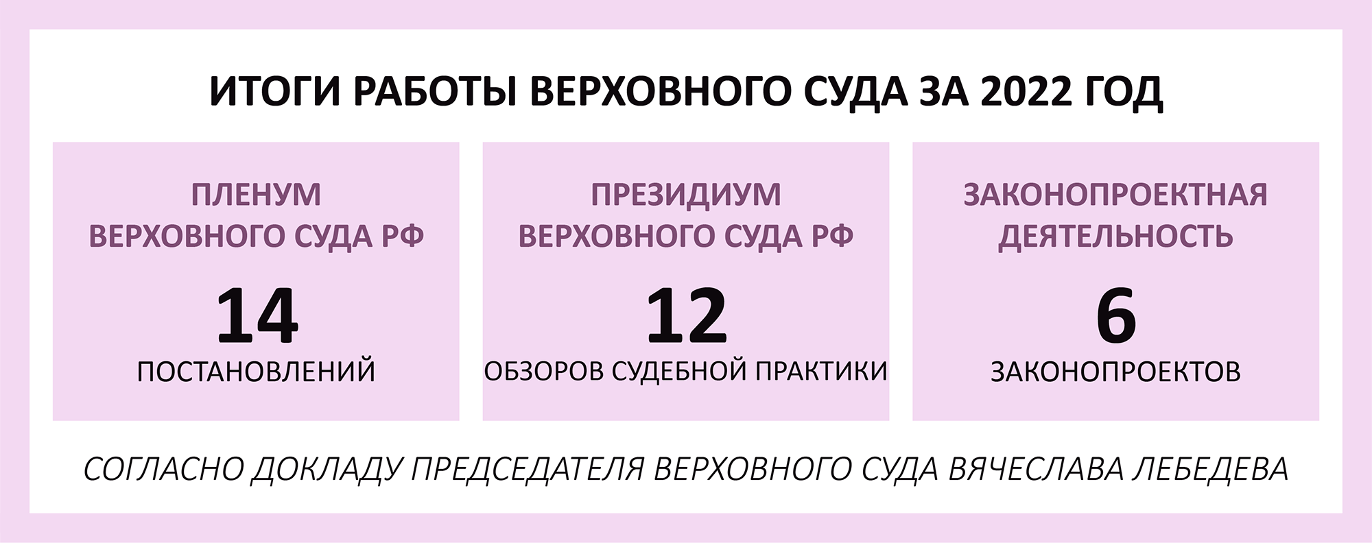 Помимо статистики, Лебедев поделился планом работы ВС на этот год. Он рассказал, что Пленум обсудит проекты постановлений: