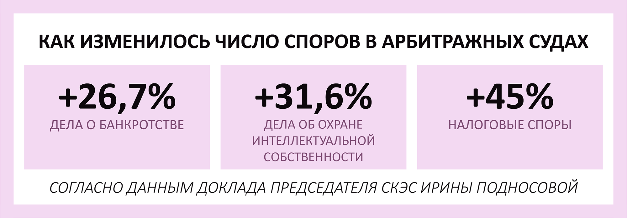 Председатель Верховного суда Вячеслав Лебедев рассказал, что в 2022-м арбитражные суды России рассмотрели 1,7 млн экономических споров, что на 62 500 дел больше, чем в 2021 году. При этом 54% разбирательств касались неисполнения или ненадлежащего исполнения договоров.