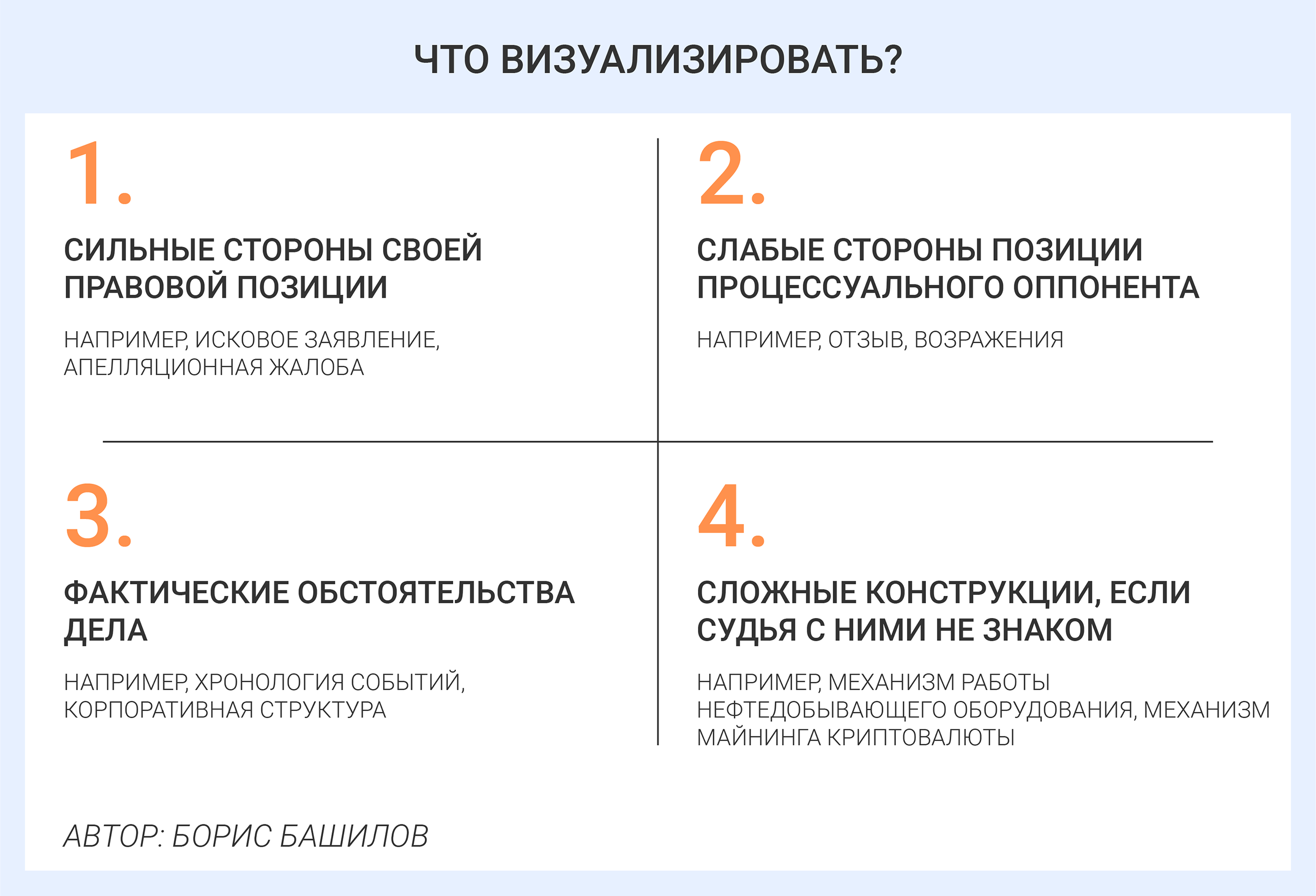 В программе мероприятия нашлось время и для обсуждения soft skills-повестки. Старший партнер юрфирмы Башилов, Носков и Партнеры Борис Башилов объяснил, почему современный юрист должен обладать хотя бы базовыми представлениями о Legal Design. Сегодня, когда жизнь идет в повышенном темпе, понятный документ увеличивает вероятность его принятия и скорость согласования, подчеркнул эксперт. Он отметил, что литигатору важно грамотно подсветить судье фактические обстоятельства по делу в документах. Для этого нелишним будет использовать таблицы, а в идеале — диаграммы.