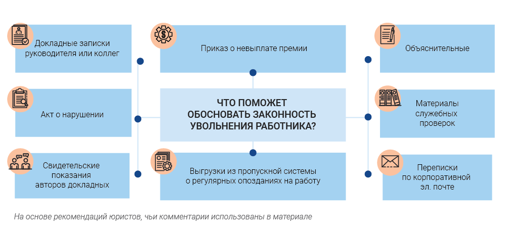 В случае спора работодателю надо показать, какие негативные последствия влекут проступки работника, говорит Фурсова. Например, потеря клиента из-за опоздания на встречу. Или же из-за постоянных задержек одного сотрудника не приходят вовремя и другие. Либо неисполнение поручения тормозит работу и как именно это происходит, перечисляет варианты эксперт.
