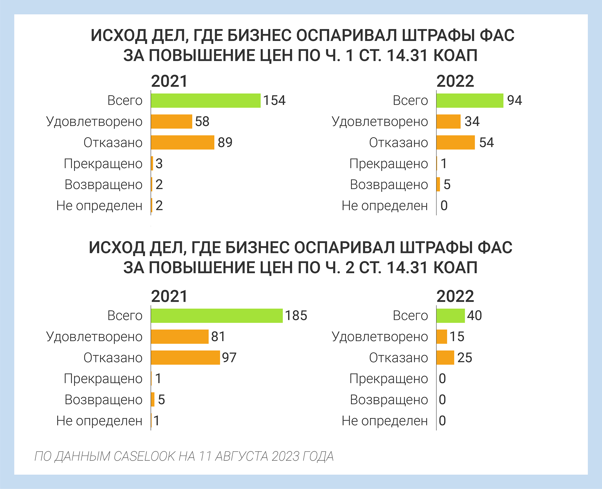 По данным Caselook, в прошлом году стали реже оспаривать выводы антимонопольной службы о привлечении к административной ответственности.