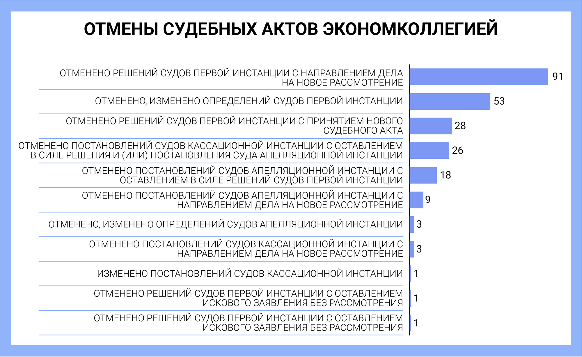 По 182 делам отменили апелляционные определения без отмены решения суда первой инстанции — это в полтора с лишним раза превышает прошлогодний показатель (110). А в 24 делах отменили определения кассационных судов общей юрисдикции без отмены решений первой и апелляционной инстанций.
