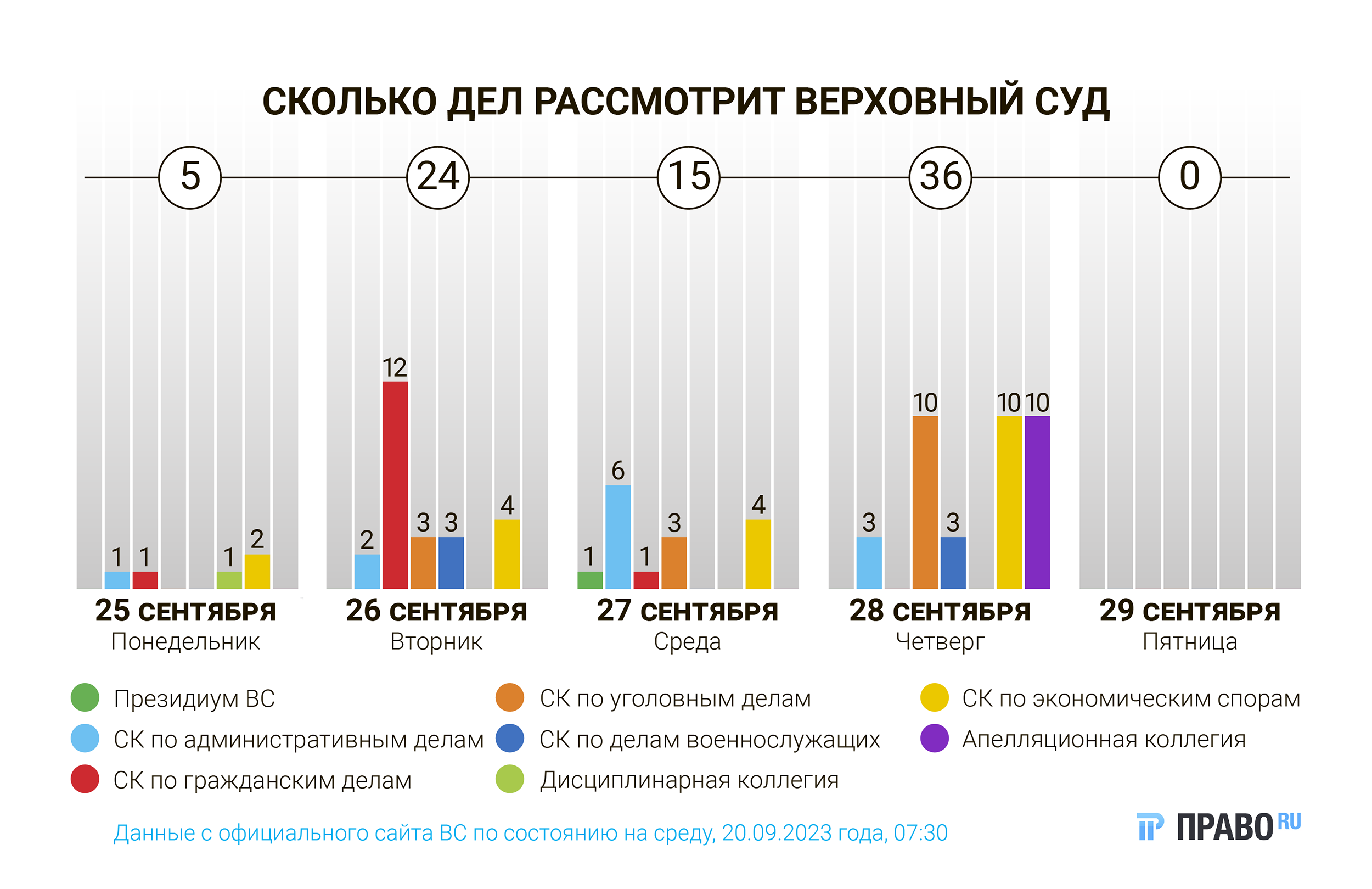 Десять жалоб разберет апелляционная коллегия. В деле № АПЛ23-353 фигуранты «экономического» дела Сергея Фургала просят отменить решение об изменении территориальной подсудности уголовного дела. ВС по ходатайству Генпрокуратуры перенес дело из Хабаровского края в Москву. По решению коллегии по уголовным делам его рассмотрит Бабушкинский районный суд Москвы. Уголовное дело возбудили осенью 2021 года. На тот момент Фургал находился в СИЗО «Лефортово» уже полтора года, его обвиняли в организации убийств — по первому обвинению он получил 22 года колонии строгого режима.