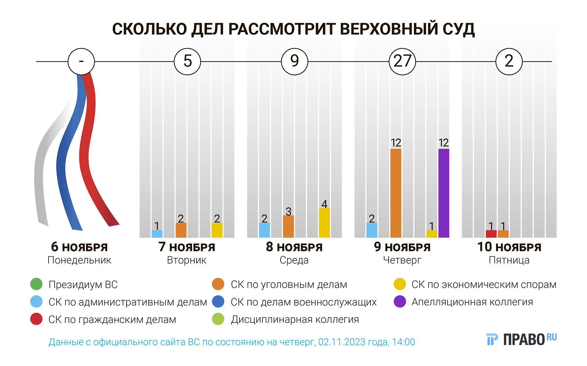 Президиум собираться не будет, не запланировано дел и в дисциплинарной коллегии. Но судейский спор есть в апелляционной коллегии. В рамках дела № АПЛ23-11Д бывший судья Промышленного районного суда г. Ставрополя Александр Филимонов пытается вернуть мантию. В мае этого года издание NewsTracker опубликовало материал с заголовком «Федерального судью в Ставрополе заковали в наручники за отказ платить в кафе». После выхода новости Совет судей Ставропольского края обратился в местную ККС с просьбой изучить информацию, которую распространили журналисты. В итоге местная квалифколлегия досрочно лишила Филимонова судейских полномочий. Это решение ККС поддержала и дисциплинарная коллегия ВС, поэтому бывший судья подал апелляционную жалобу.