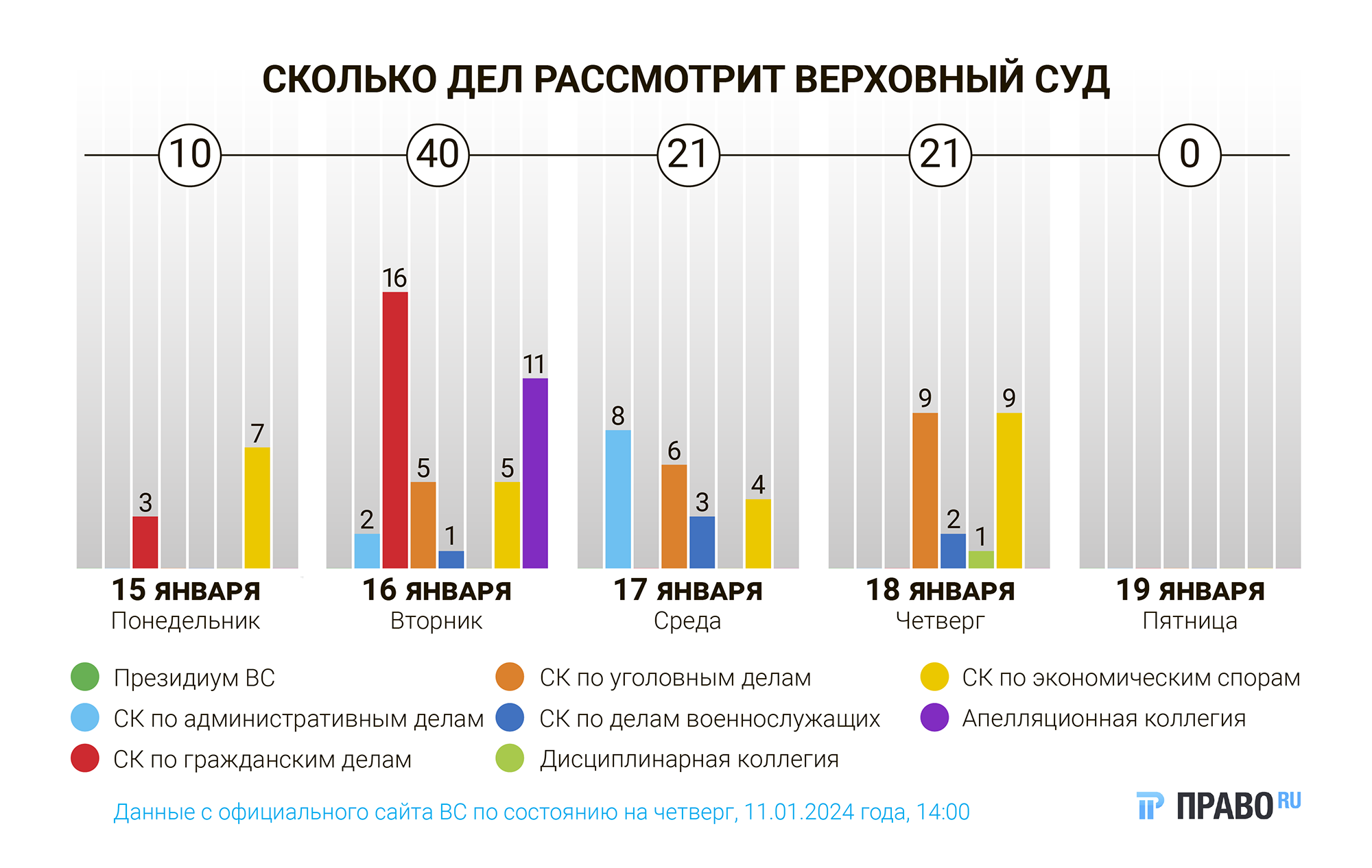 Судейские дела есть и в апелляционной коллегии. Всего там планируют рассмотреть 11 дел, среди них:
