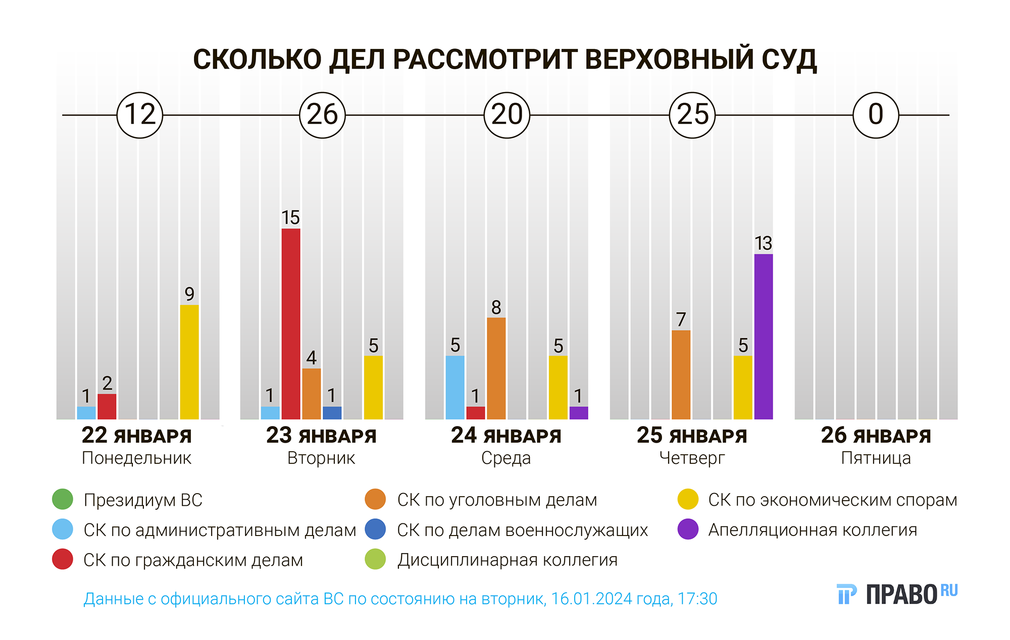 Апелляционная коллегия на этой неделе рассмотрит 14 жалоб, а Президиум ВС и дисциплинарная коллегия не соберутся.
