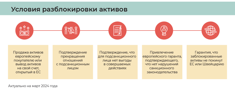 Как действовать инвесторам, чьи активы заблокировали из-за санкций в отношении банков и депозитариев, рассказал советник Denuo Иван Сезин. Одним из инструментов спикер назвал генеральные лицензии, выпущенные в отношении Национального расчетного депозитария. Это общие условия, которые позволяют разблокировать конечные активы не самих подсанкционных лиц, а не включенных в списки инвесторов. Сейчас такие лицензии выдают Бельгия и Люксембург. При этом в большинстве случаев регуляторы либо отказывали, либо бездействовали. Так, в коллективном обращении отказали брокеру «Цифра», «Тинькофф страхованию» и «Альфа-Капиталу». Но есть и положительные решения, которые показывают, что разблокировка возможна при строгом соблюдении регламента Совета ЕС № 269/2014 и политики регуляторов.