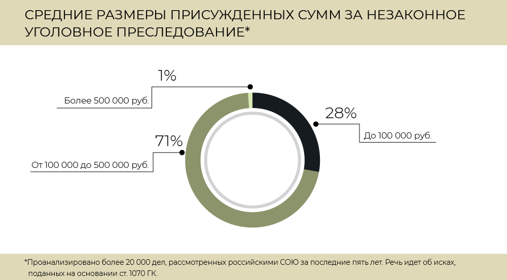 С учетом примеров выше вполне реалистично выглядит расчет размера удовлетворенных судом требований по таким искам за последние пять лет, который провел адвокат и ведущий юрист АБ «Забейда и партнеры» Роман Бубнов на основе открытой статистики Судебного департамента при ВС. В среднем реабилитированным присуждают чуть более 2% от заявленной ими суммы иска. Так, из заявленных в первом полугодии 2023 года 10,9 млрд руб. в пользу фигурантов незаконного уголовного преследования взыскали только 231 млн руб.