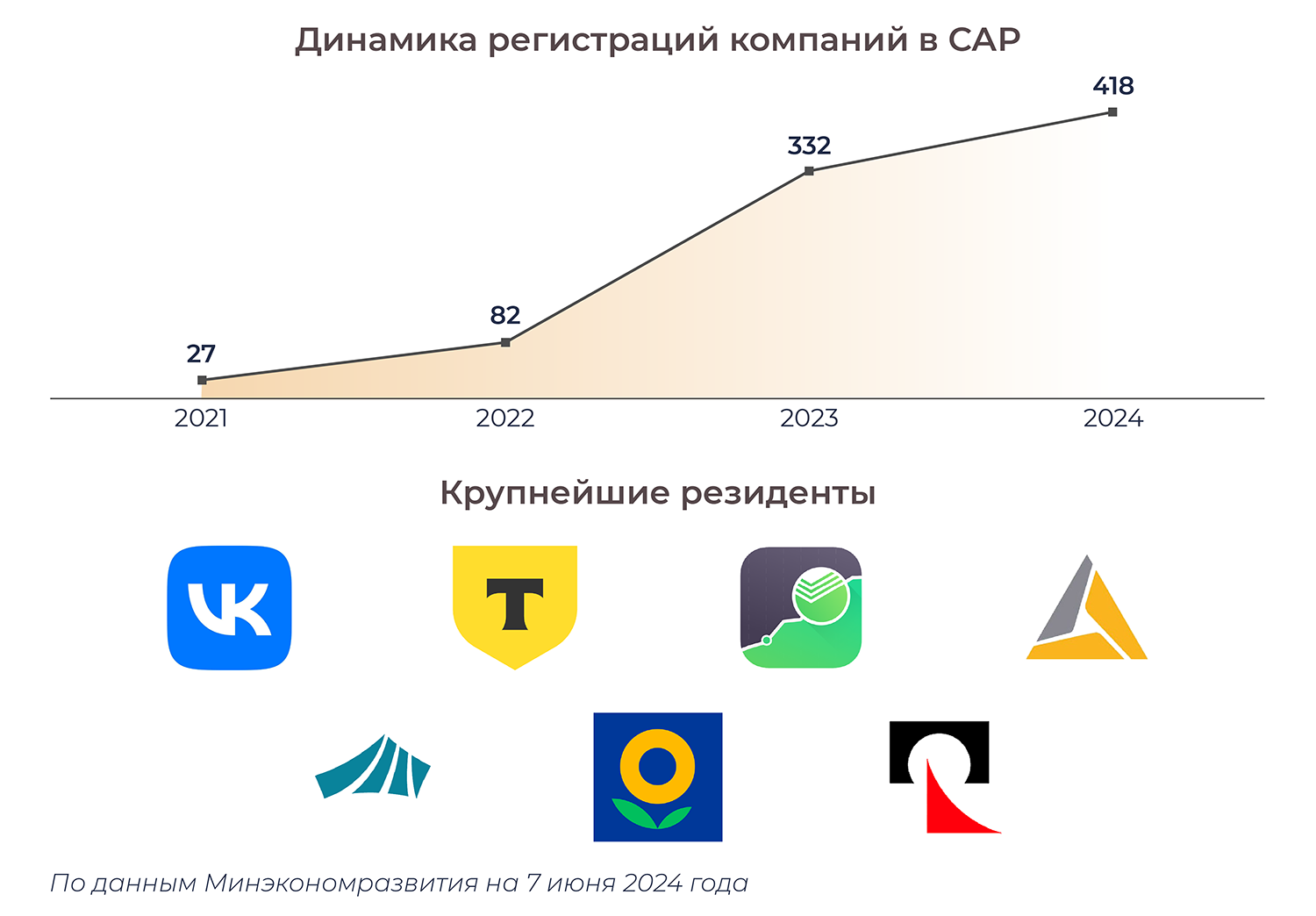 По данным Минэкономразвития, к 7 июня 2024 года резидентами САР стали 418 компаний, тогда как в октябре 2023 года их было 277. Среди них: «Сбербанк Инвестиции», «ВКонтакте», «Т-банк» и Polymetal. Такую популярность Борткевича объясняет подробным законодательным регулированием и льготами для редомицилированных компаний, в частности налоговыми.