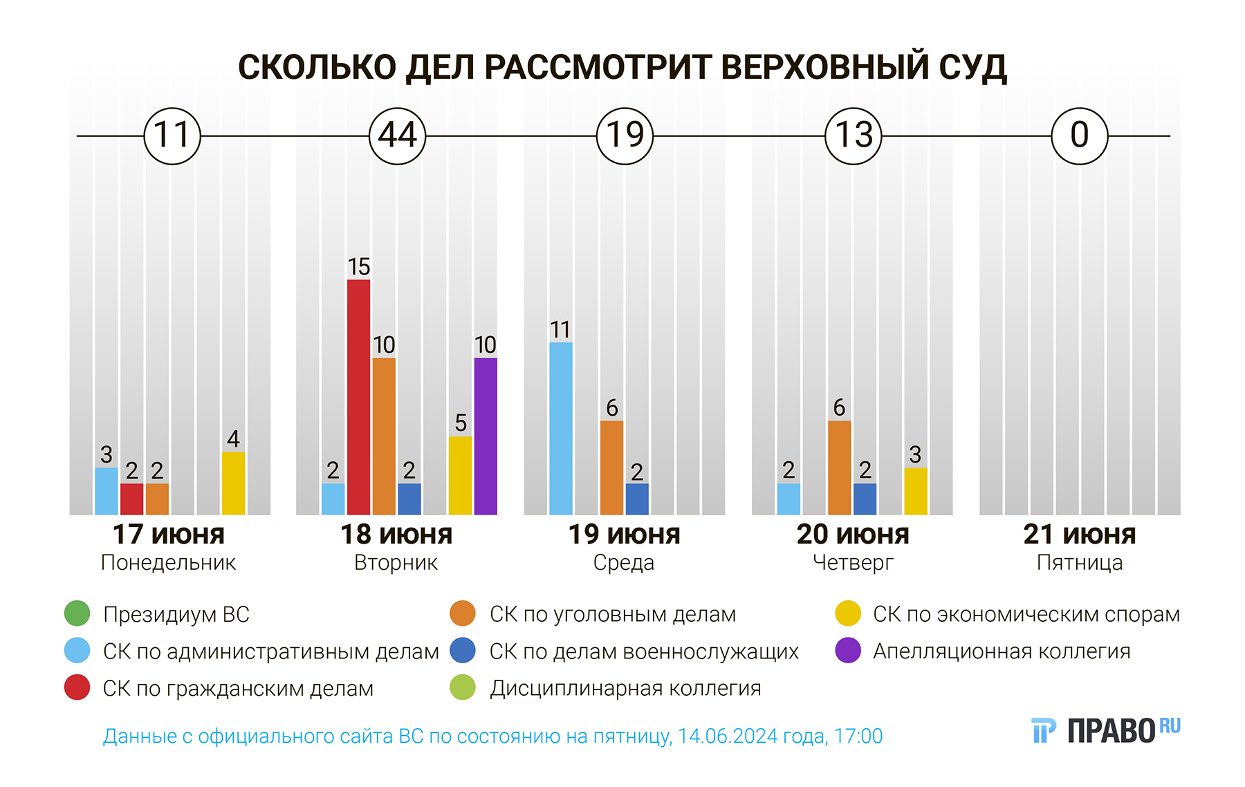 Десять дел состоится в апелляционной коллегии, шесть из них — неявочные, а еще одно — судейское. Бывший судья АС Волгоградской области Дмитрий Поляков оспаривает январское решение областной ККС о прекращении его отставки. Статуса отставника его лишили за драку с управляющим ресторана и участие в управлении компанией «Густол». Админколлегия ВС весной этого года отказалась удовлетворять требования Полякова (№ АКПИ24-195).