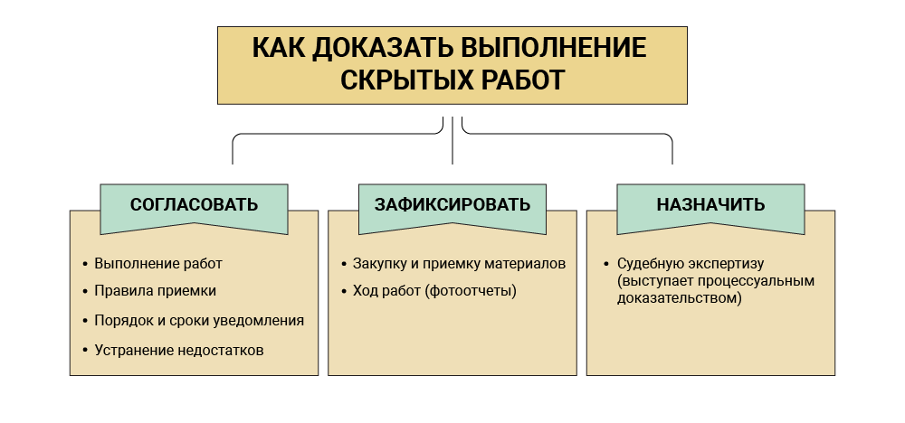 Практическая сложность подтверждения скрытых работ связана с недостатками в закрывающих документах и их несовременным изготовлением, продолжает Иван Звонков, ведущий юрисконсульт Департамента правового сопровождения стратегических клиентов ФБК Legal Все это приводит к многочисленным проблемам и судебным спорам, единой практики по которым пока не сложилось. Часть судов считали, что для доказательства скрытых работ достаточно правильно оформленных документов. Другие — что доказать их поможет итоговый результат: если стороны смогли его достичь, значит, все промежуточные этапы выполнены.