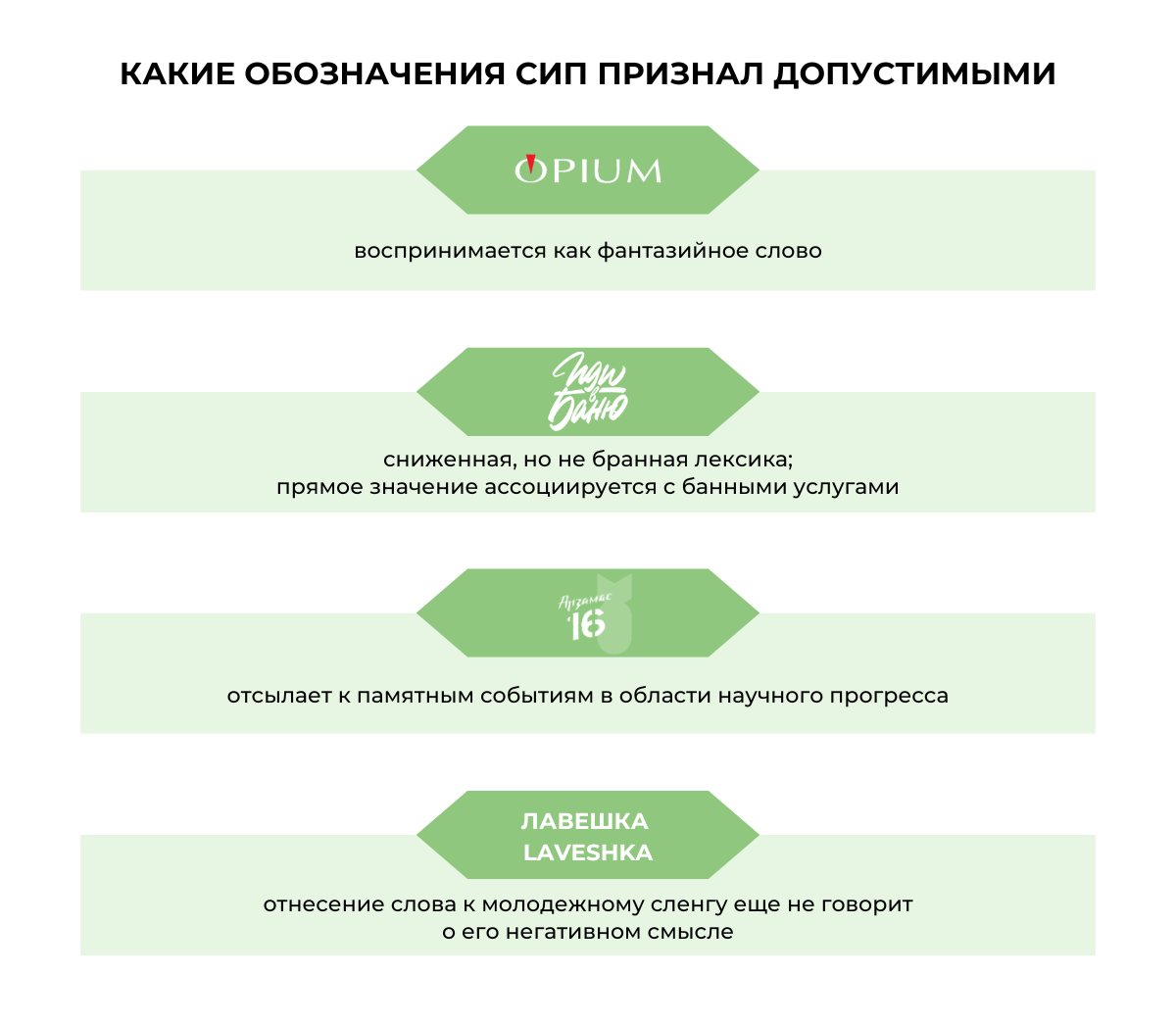 Еще один успешный кейс — регистрация обозначения «Лавешка Laveshka». Роспатент отказал, посчитав его жаргонным словом для обозначения искаженной речи. Особую тревогу у экспертов вызвали товары для детей и подростков. Но СИП снова не согласился. Роспатент не указал, каким общественным интересам или принципам морали нанесут вред. Отнесение слова к молодежному сленгу еще не свидетельствует о его негативном смысле. А квалификация обозначения как недопустимого должна строиться на системном анализе источников с точки зрения обычного потребителя, подчеркнул суд (№ СИП-862/2024).