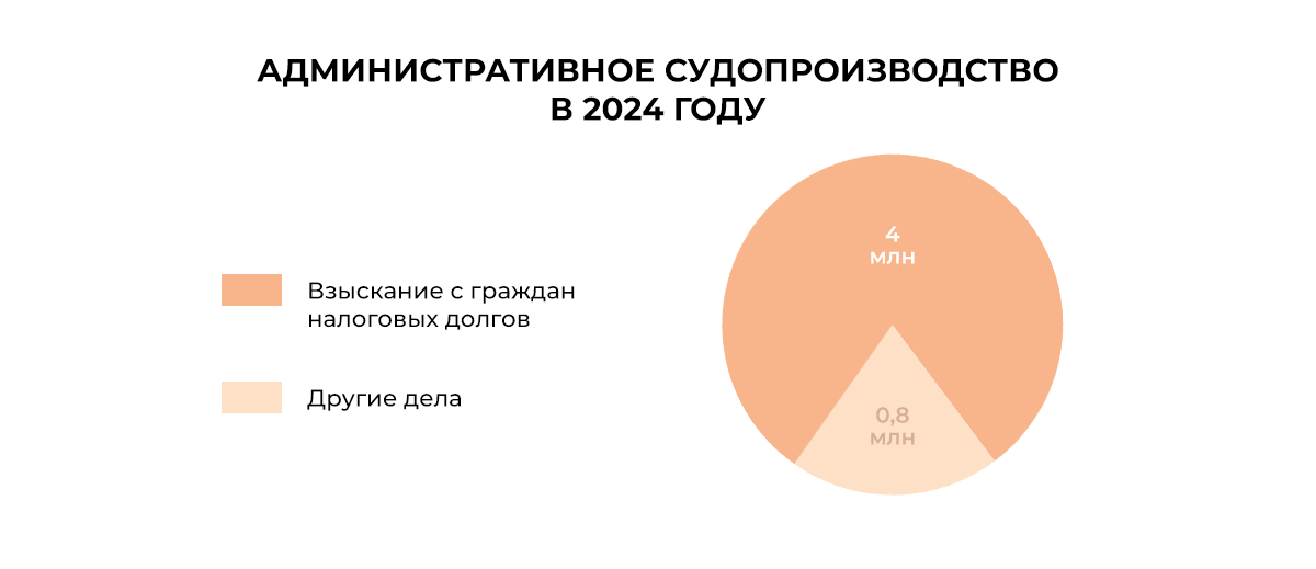 Судебная нагрузка в этой категории выросла больше чем в два раза. ВС связывает это с тем, что налоговая возобновила взыскание налогов с граждан после 2023 года.