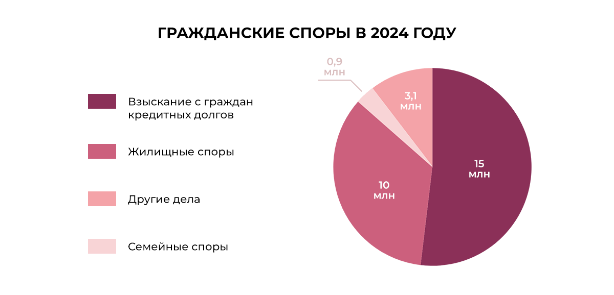 Больше всего гражданских споров по-прежнему в категории дел о взыскании с граждан кредитных долгов.