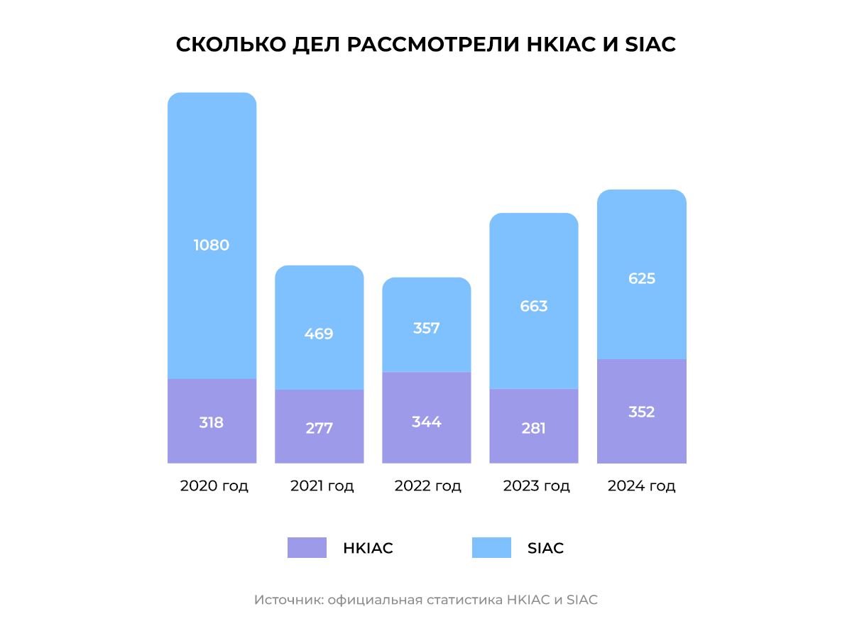 В сингапурском форуме отечественные компании не входили в топ по количеству споров с их участием, но сейчас юристы отмечают рост заинтересованности в SIAC со стороны российского бизнеса и определенную осторожность при выборе HKIAC. Это отразилось и на статистике: уже в 2024 году Россия не вошла в топ-10 юрисдикций, стороны из которых участвовали в разбирательствах в Гонконге.