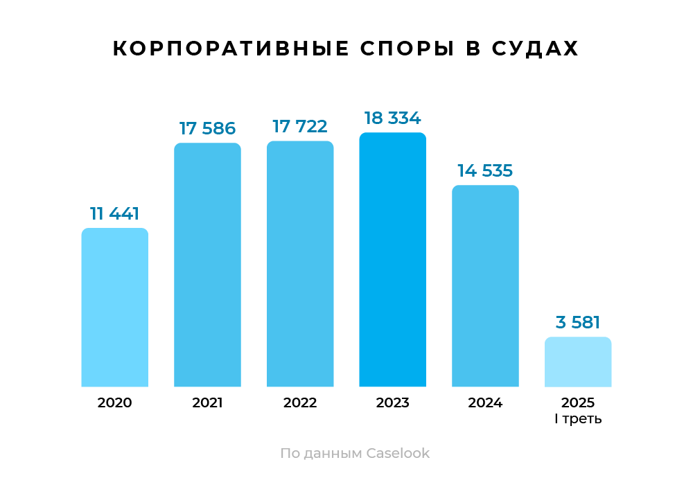При этом клиенты стали чаще обращаться к юристам из-за корпоративных разногласий, подчеркнул Илья Болотнов, партнер «Пепеляев Групп» Причина — в усложнении корпоративных споров. Дела, порожденные конфликтами внутри компаний, все чаще доходят до Верховного суда — это отметила председатель ВС Ирина Подносова в своем докладе по итогам 2024 года. В 2025-м ВС планирует выпустить разъяснение по корпоративным спорам.
