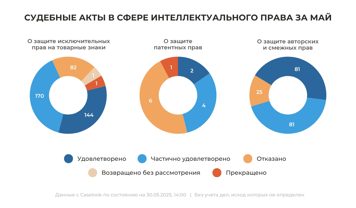 Опубликованное в мае исследование подтвердило, что регистраций интеллектуальной собственности стало больше. При этом суммы взыскиваемых компенсаций в контрафактных спорах тоже увеличились. Эксперты связывают эти тренды с уходом иностранных брендов и развитием маркетплейсов. Госдума рассмотрит проект о внесении в Гражданский кодекс норм об ИИ. Еще завершился спор о товарных знаках Starbucks — СИП решил, что бренд Stars Coffee уже обрел самостоятельную известность у потребителей.