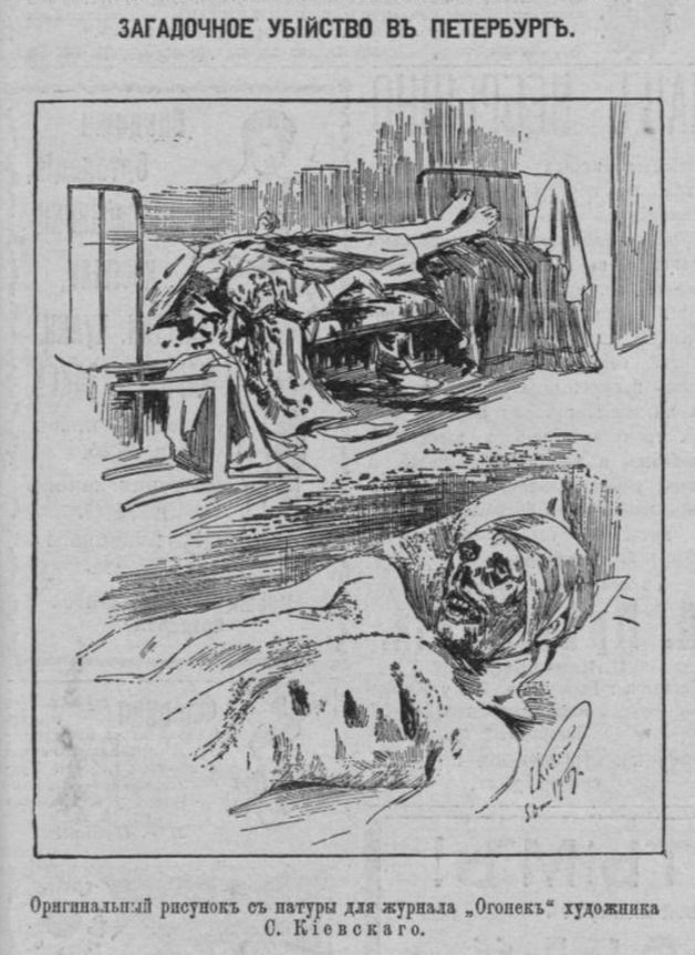 Хирурги морга Обуховской больницы, куда доставили труп, говорили, что ничего подобного ранее не видели. «Преступление чудовищно и необычайно», — заявляли они, и газеты тысячами экземпляров разносили эту характеристику по Петербургу.