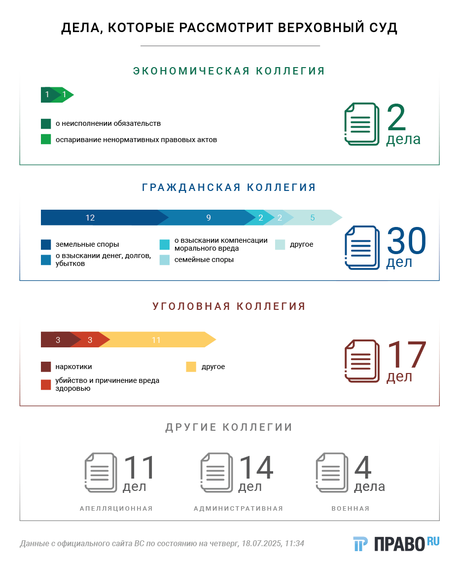 Дисциплинарная коллегия на этой неделе не будет собираться, а споры с участием судей рассмотрит коллегия по административным делам. Так, судья Промышленного районного суда Курска Александр Кулешов будет оспаривать предупреждение, которое ему вынесла ККС Курской области из-за внепроцессуального общения со сторонами. Высшая квалифколлегия оставила это решение в силе, поэтому судья решил оспорить его в ВС (дело № АКПИ25-403).