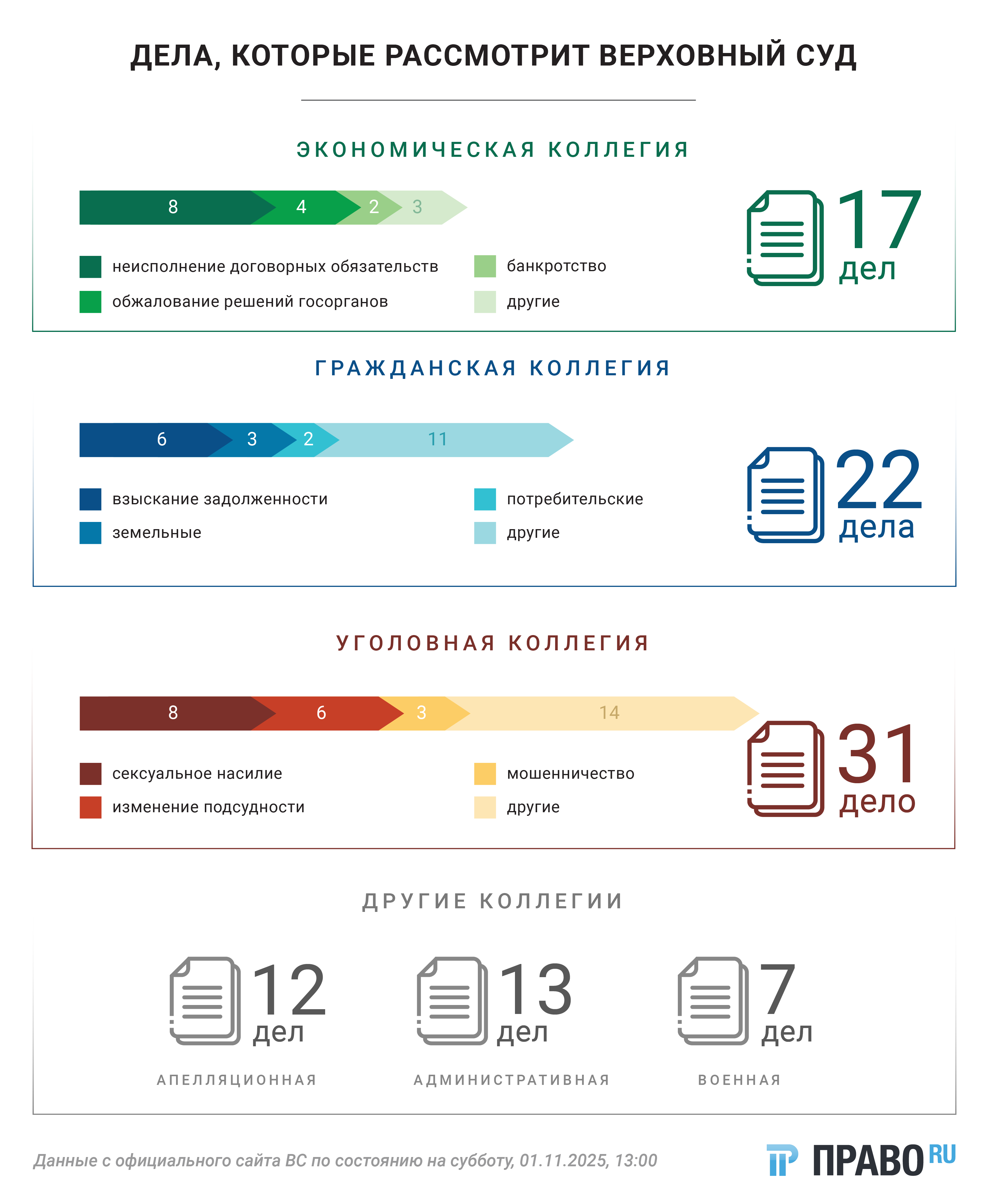 Президиум в ближайшие две недели собираться не будет. Но интересный спор есть в гражданской коллегии. Айдар Белкеров* обратился в суд, чтобы взыскать неосновательное обогащение с Азизы Нуреевой*. Ответчик попросил, чтобы заявление оставили без рассмотрения, так как иск подписан лицом по недействительной доверенности. Во-первых, в документе указали данные паспорта с истекшим сроком (не уточняется, чьего именно — доверителя или доверенного). Во-вторых, для этой доверенности, сделанной в Германии, недостаточно апостиля, а нужна более сложная легализация. Бутырский райсуд Москвы удовлетворил ходатайство и оставил иск без рассмотрения. Но апелляция отменила решение, направив дело на рассмотрение. Для немецких доверенностей апостиля достаточно, а просроченный паспорт не дает оснований признать доверенность недействительной, указал суд. И кассация поддержала эту позицию. 11 ноября в споре разберется ВС (дело № 5-КГ25-106-К2).