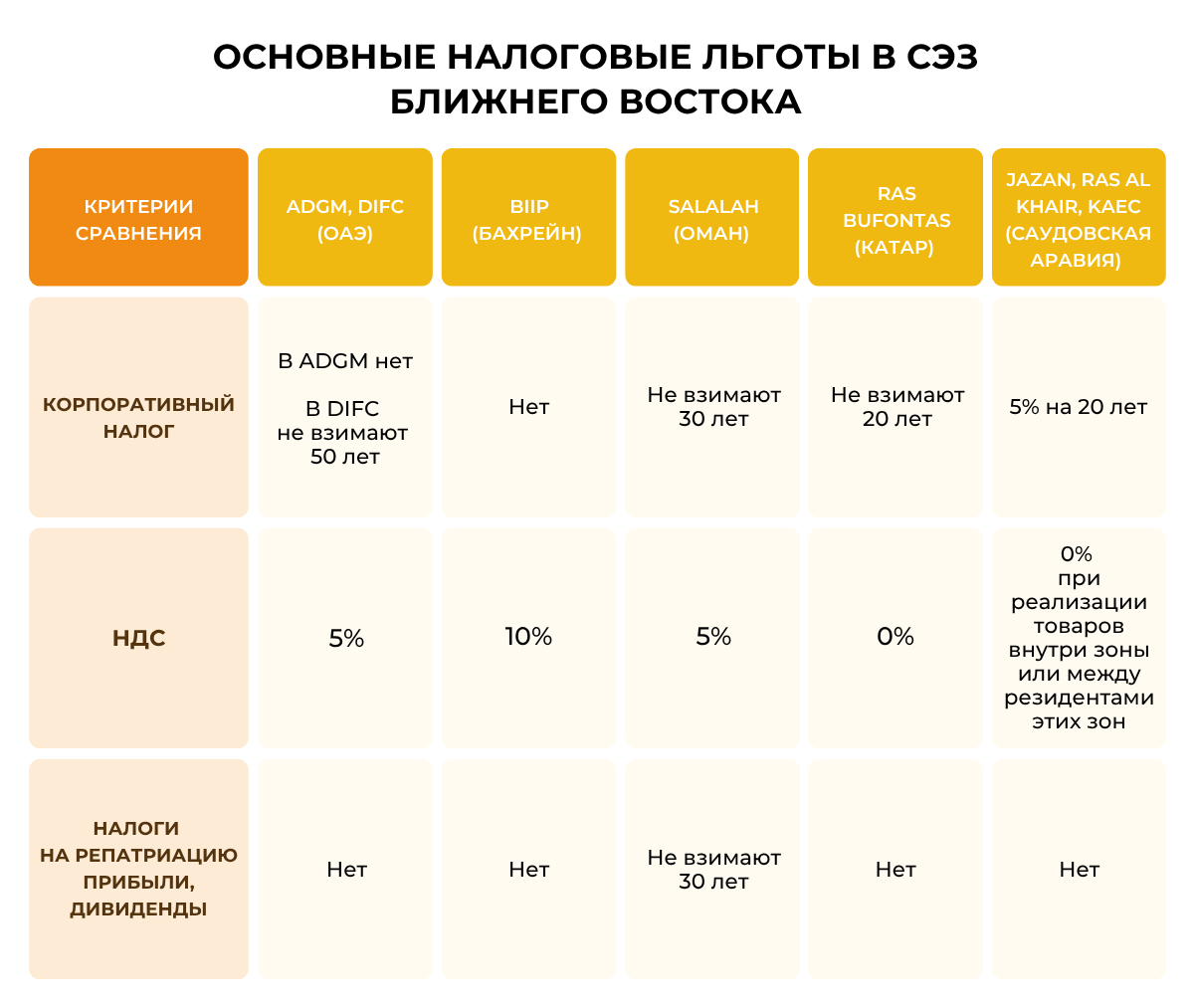 Ключевой тренд региона — это создание многопрофильных свободных экономических зон и их полная интеграция в общую бизнес-среду юрисдикции. Например, в ОАЭ существует большое количество СЭЗ, резиденты которых практически не скованы никакими ограничениями. Катар тоже делает определенные шаги в этом направлении: упрощается процесс регистрации компаний, создаются новые зоны, собственные правила зон и их законодательство постепенно смягчается.